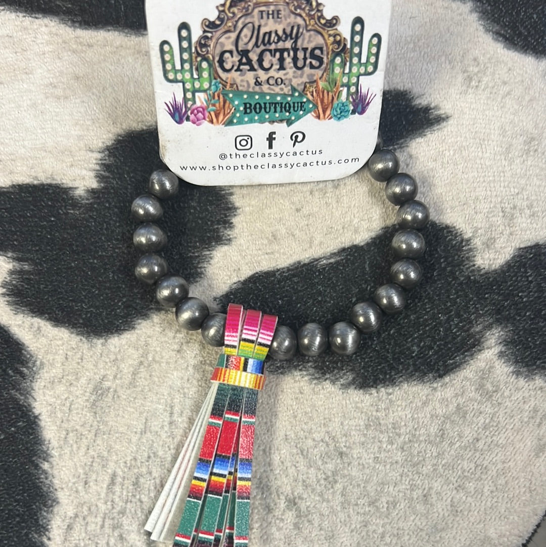 Silver beaded faux Navajo Pearl Bracelet with extra pizazz tassle