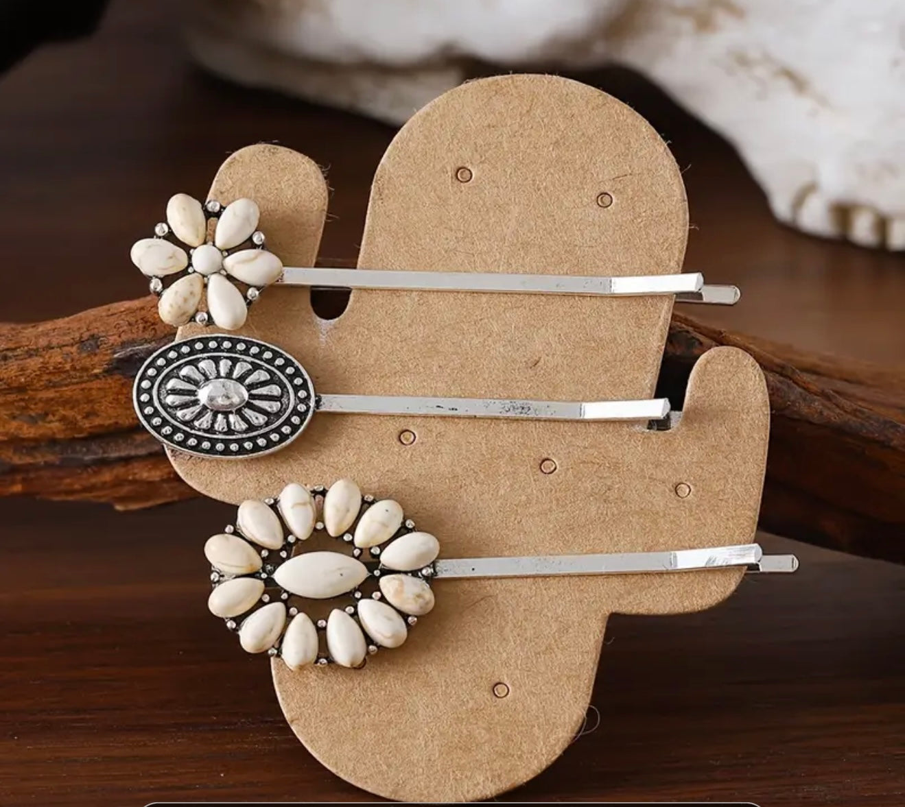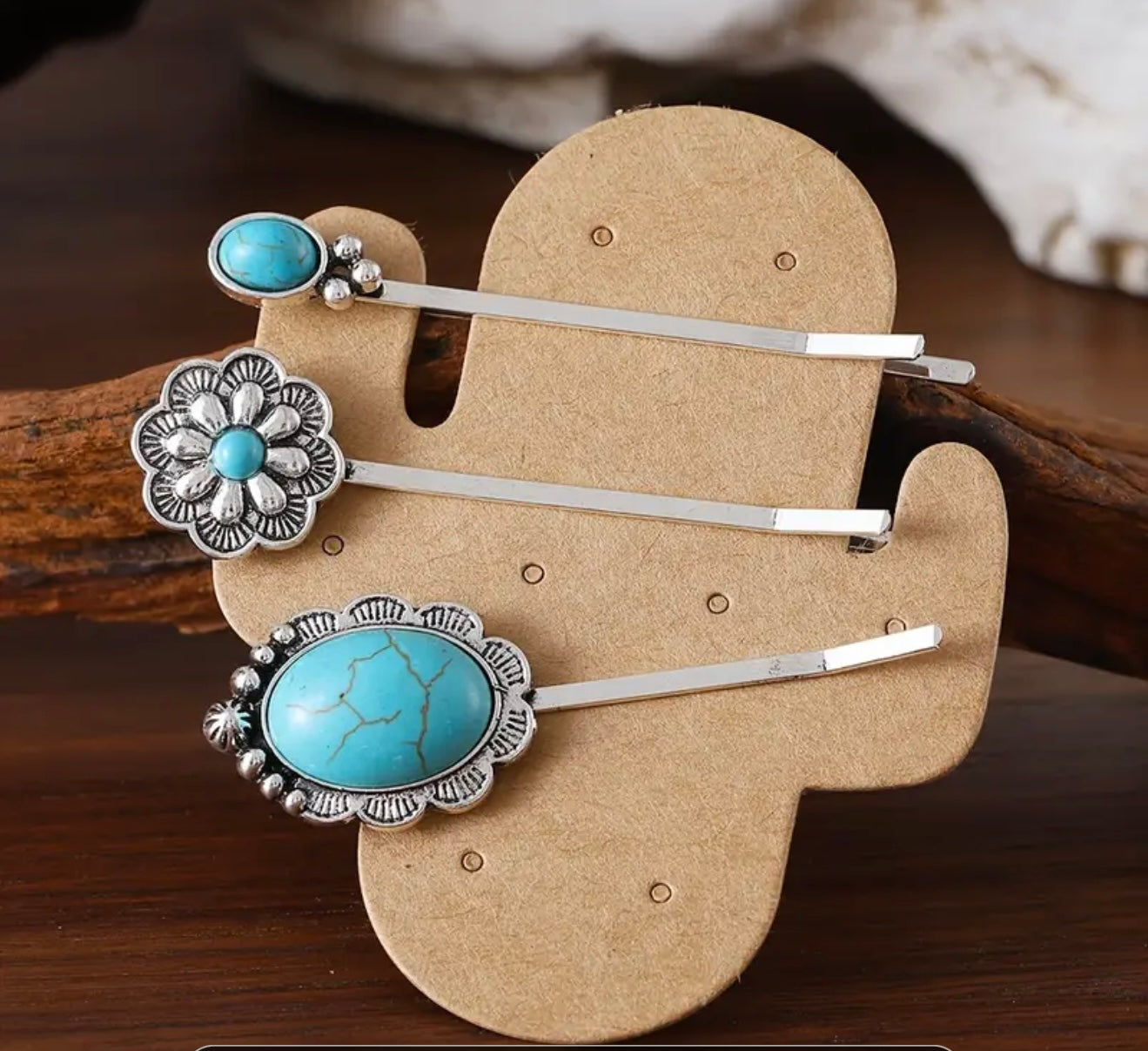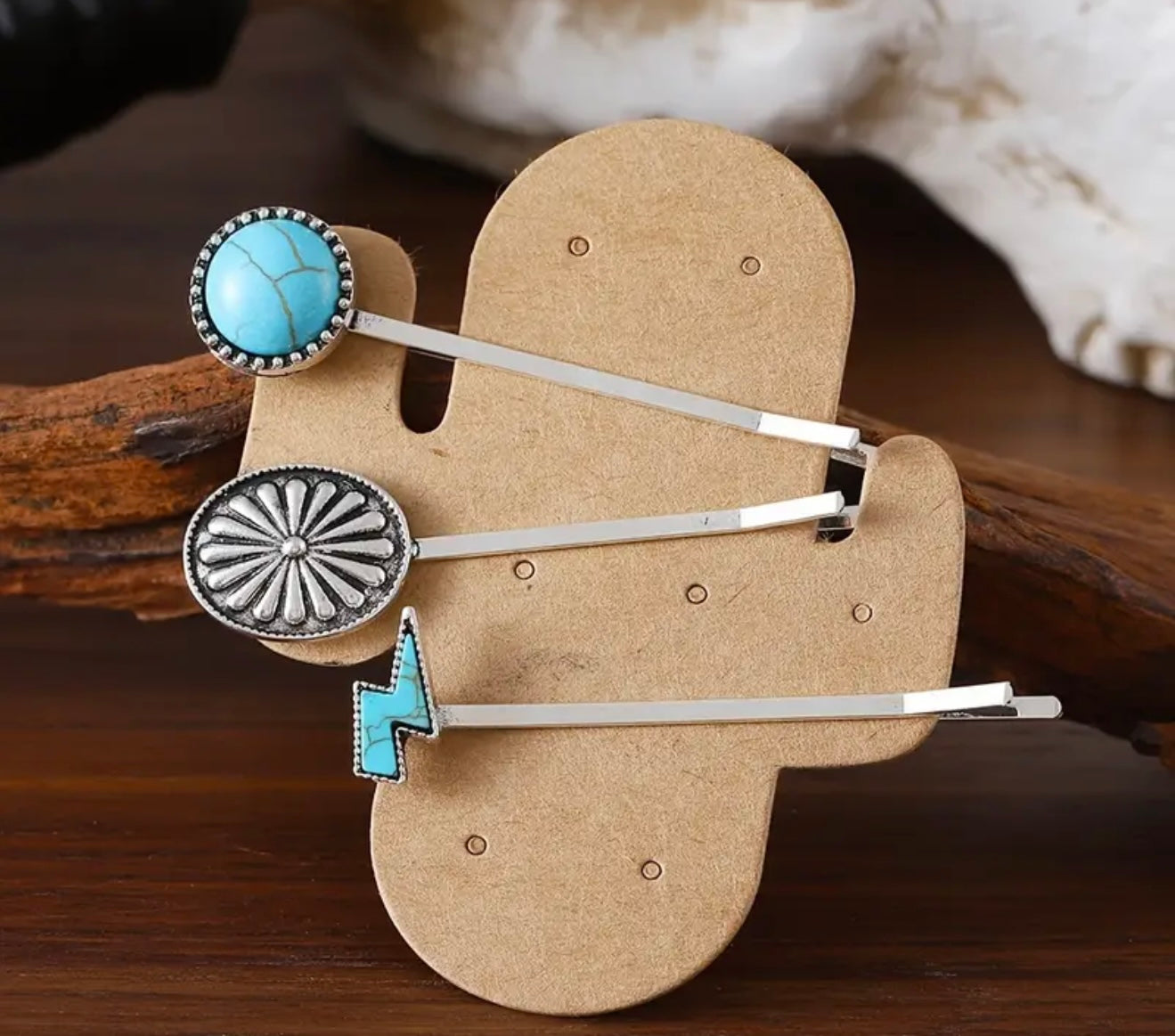 Introducing The Western Hair/Hat Pins - the perfect accessory for any western look. Made with Faux Turquoise and Buffalo these versatile pins add a touch of rustic charm to hairstyles or hats. With a variety of designs to choose from, you can easily elevate your style with these unique pins.