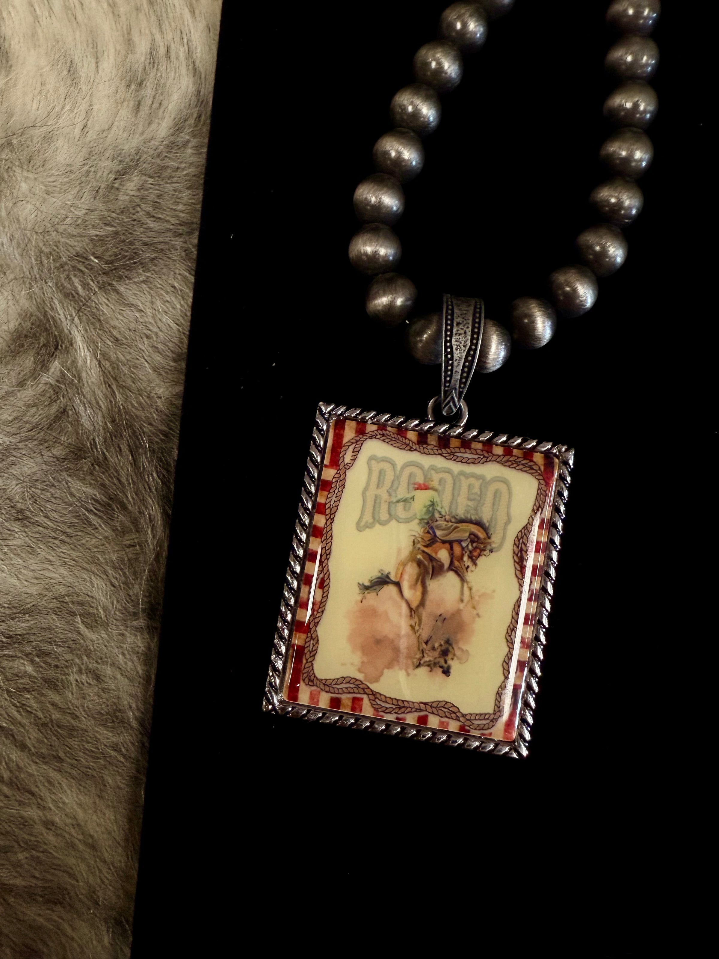 Western Retro Let'r Buck & Rodeo Pendent Necklace