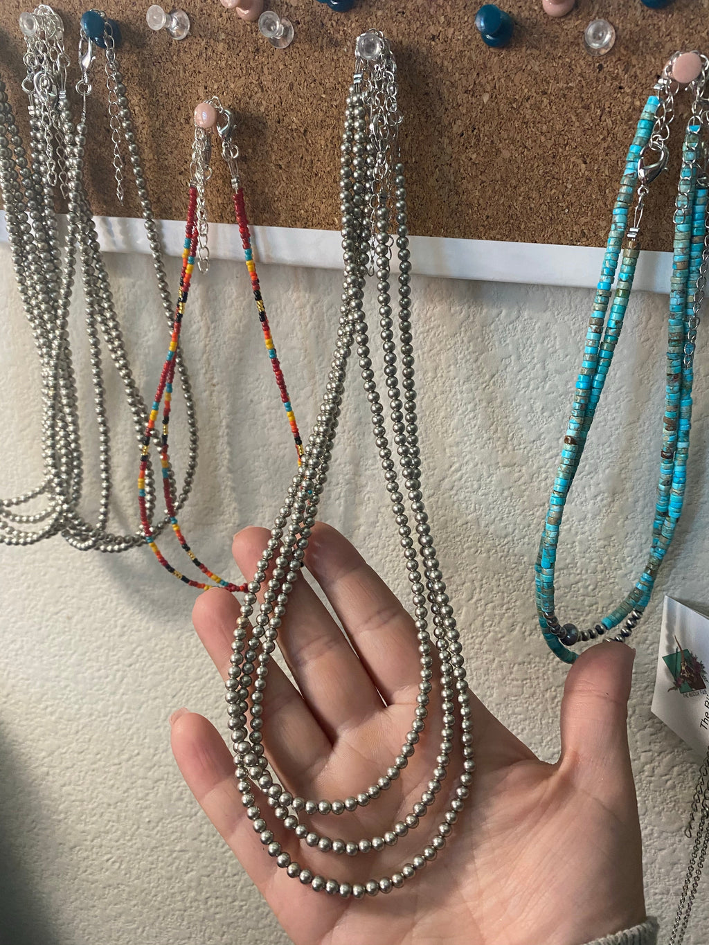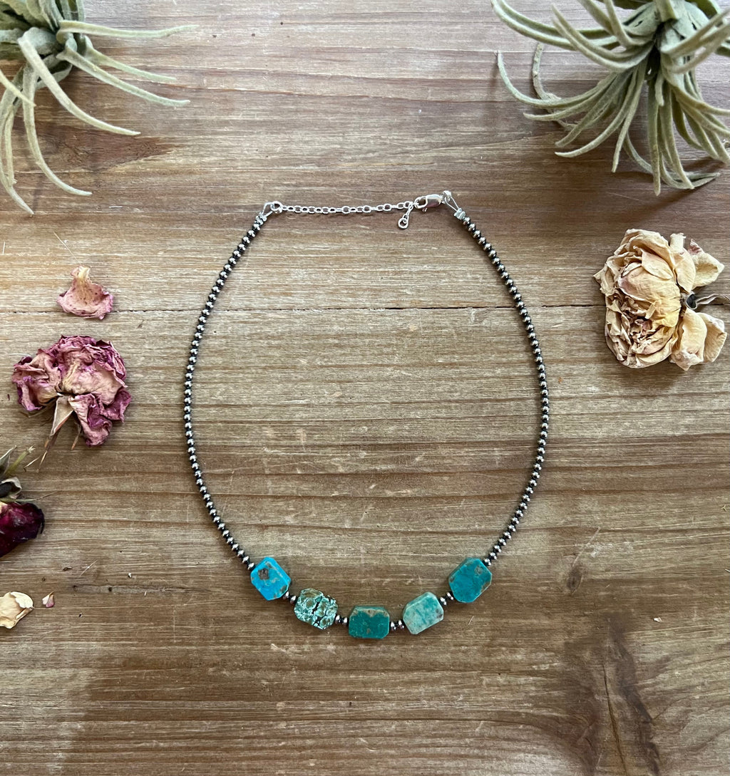 3 mm Sterling Silver Pearls choker with flat turquoise