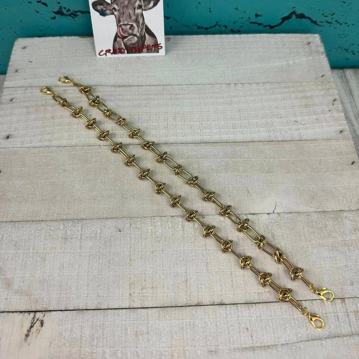 Transform your hats into stylish pieces with our trendy hat chains! Measuring at 10 inches, these chains add a touch of fashion to your favorite hats. Upgrade your accessory game and stand out from the crowd with our Hat Chains. All may be a little different as we make our own.
