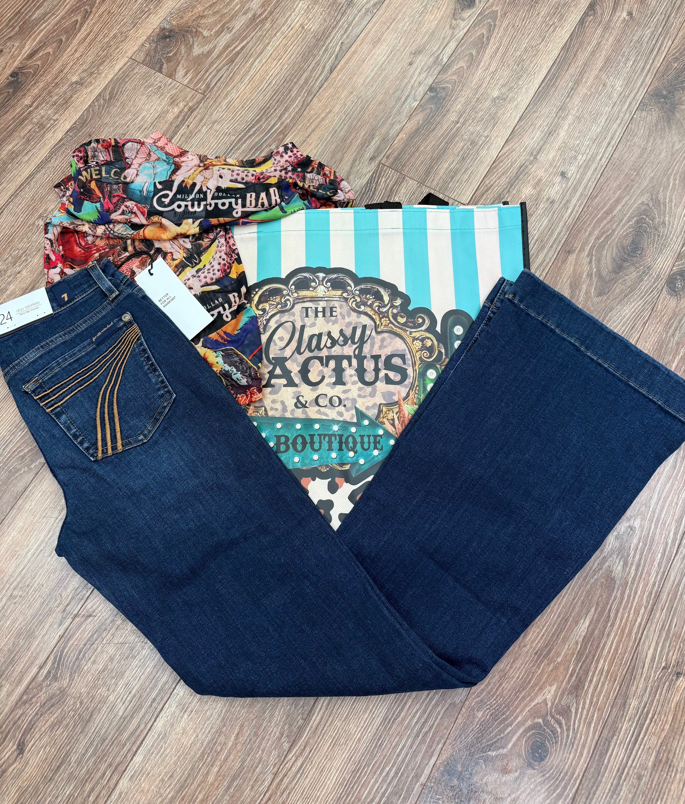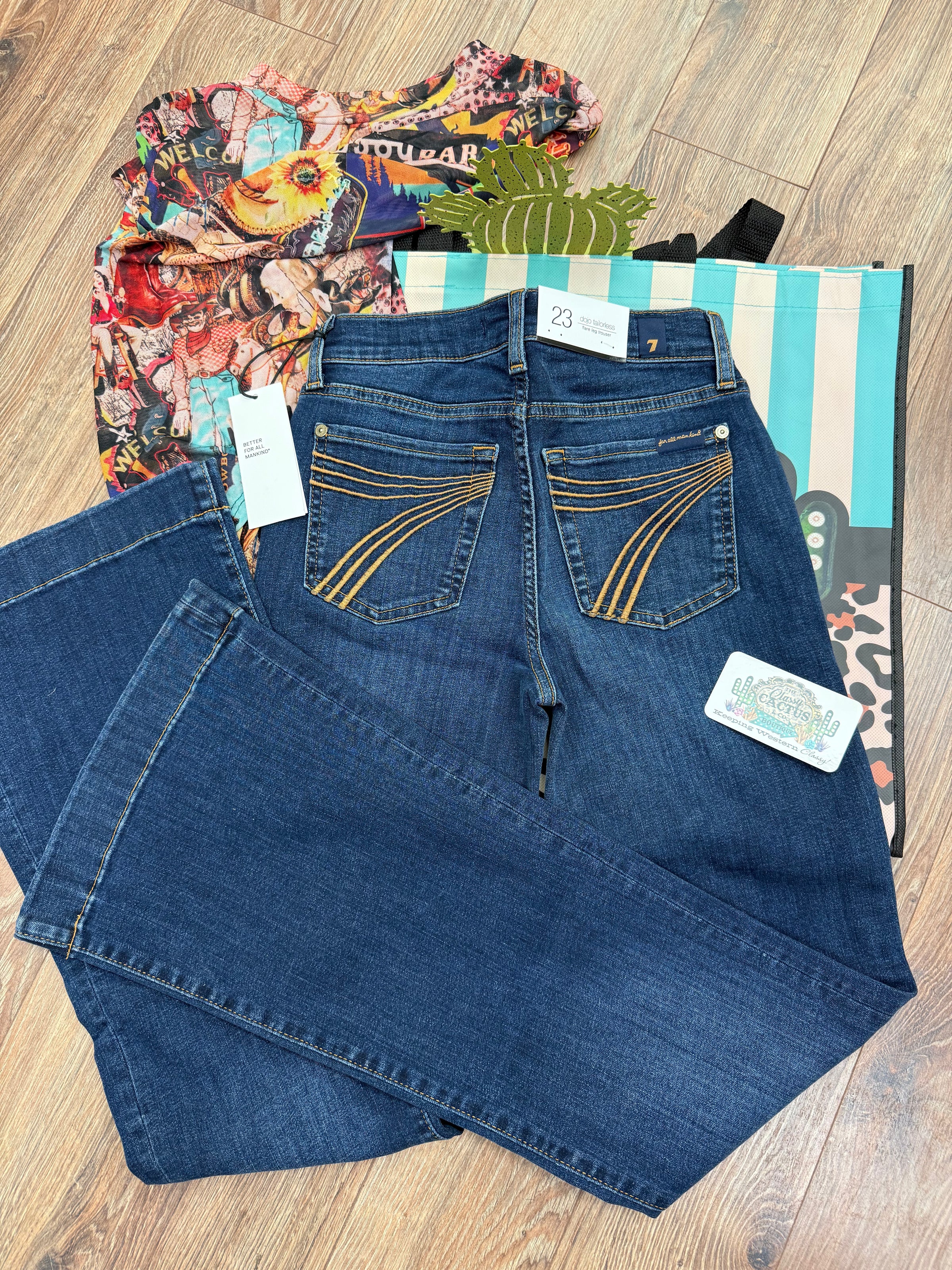 The DOJO 7's For All Mankind High Wave Tailorless jeans features expert design with a mid-rise fit and premium imported fabric. These flare leg trousers provide a flattering silhouette while offering a waistband that won’t gap, ensuring comfort and style throughout the day and while riding.  Enhanced with performance stretch, they deliver flexible movement without sacrificing shape.