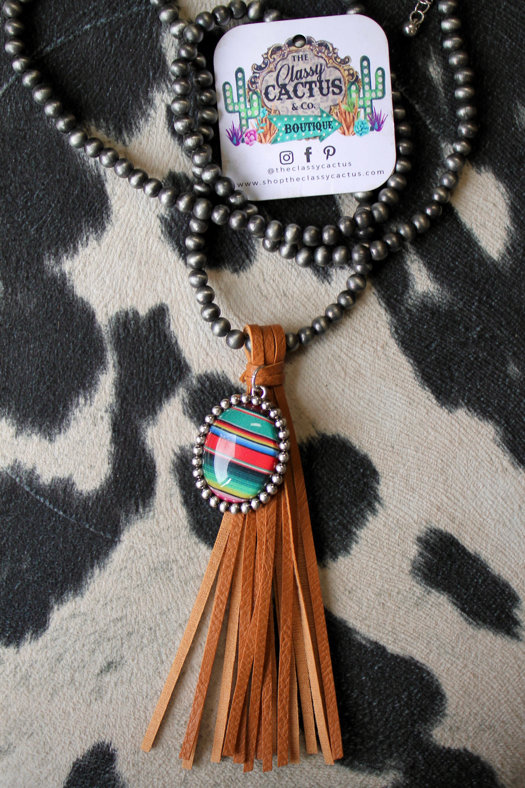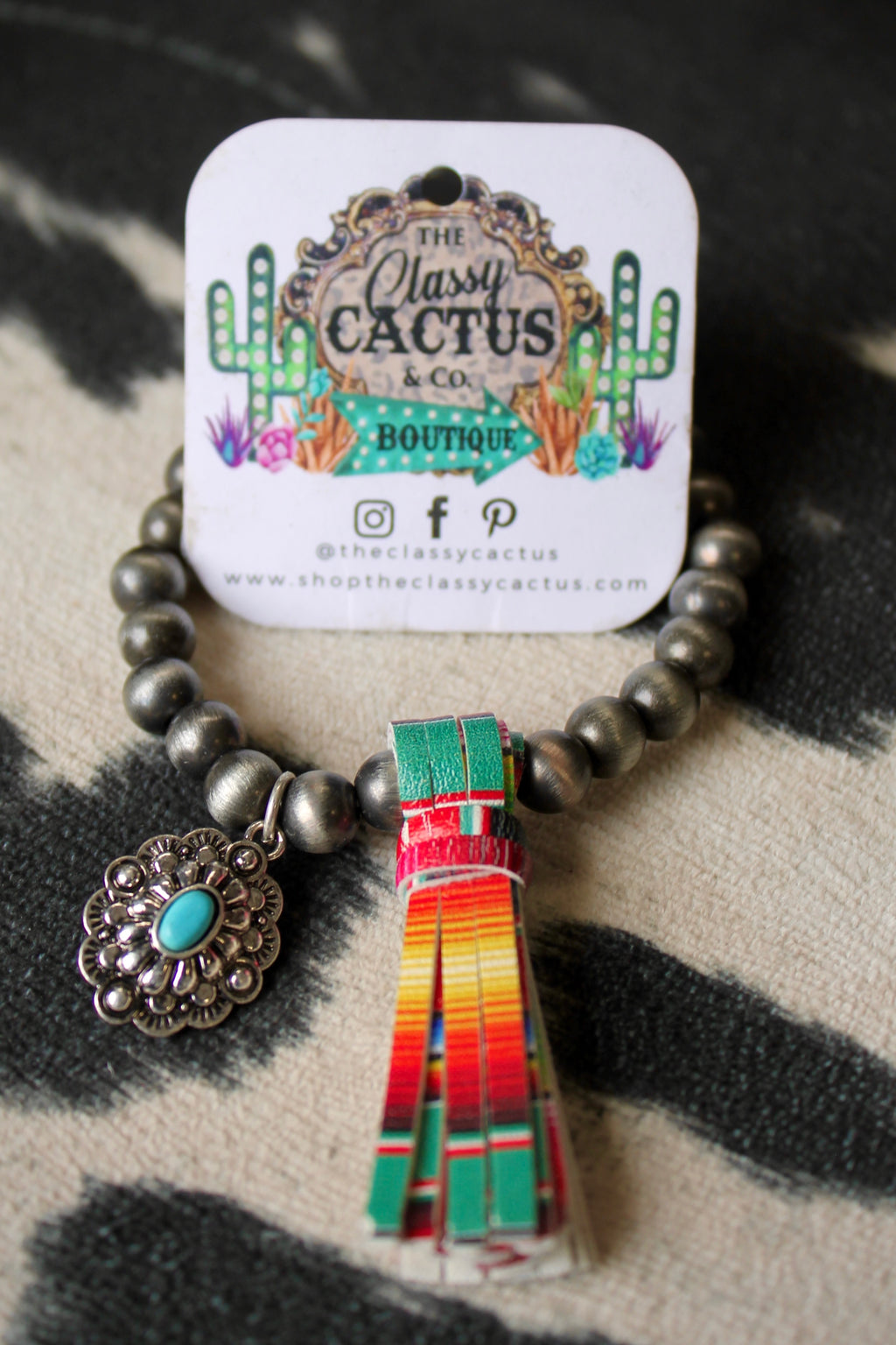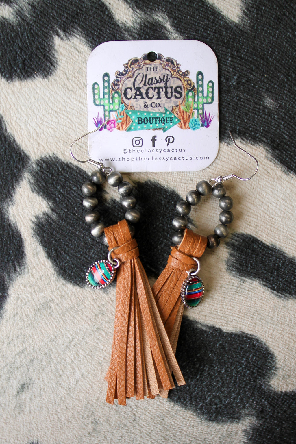 Faux Pearl Earring w/ Tassel & Serape Charm