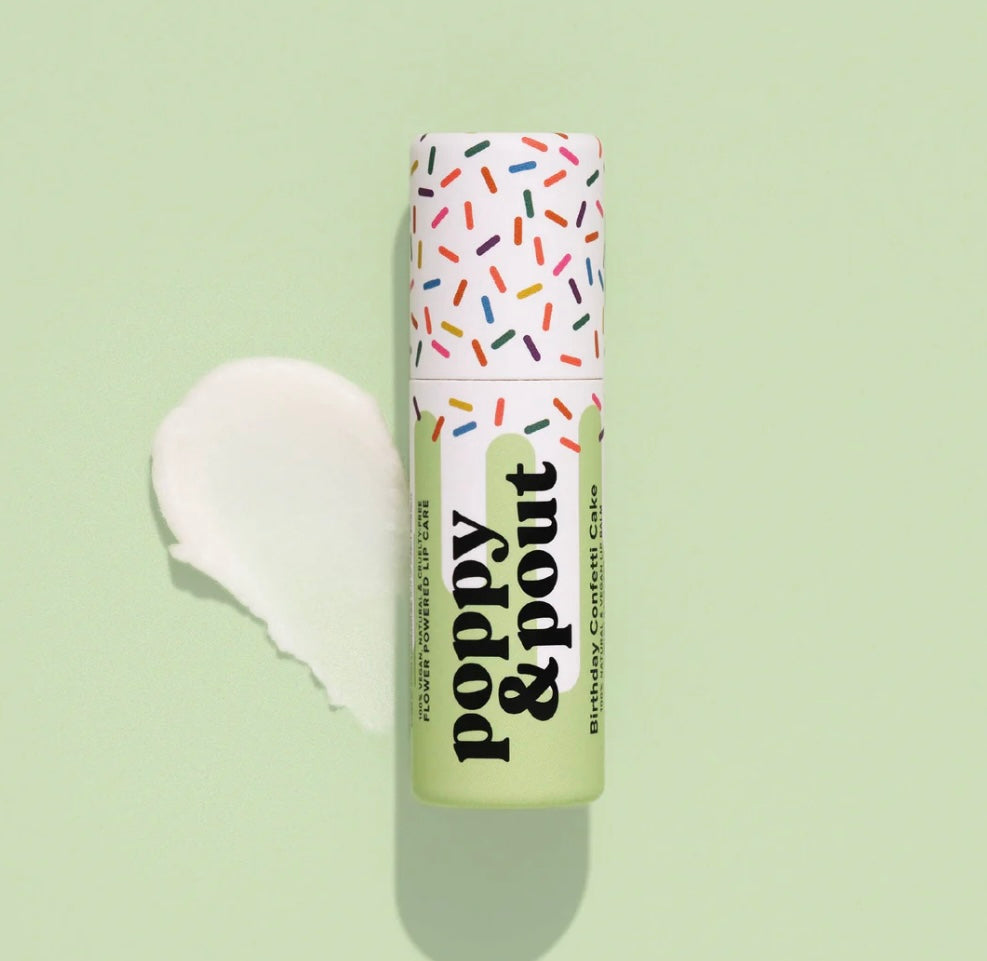 Birthday inspired Lip Balm smells like vanilla cake with sweet subtle notes of raspberry. It’s a super smooth vegan formula with 100% natural ingredients like sunflower wax to keep your lips hydrated all day long!