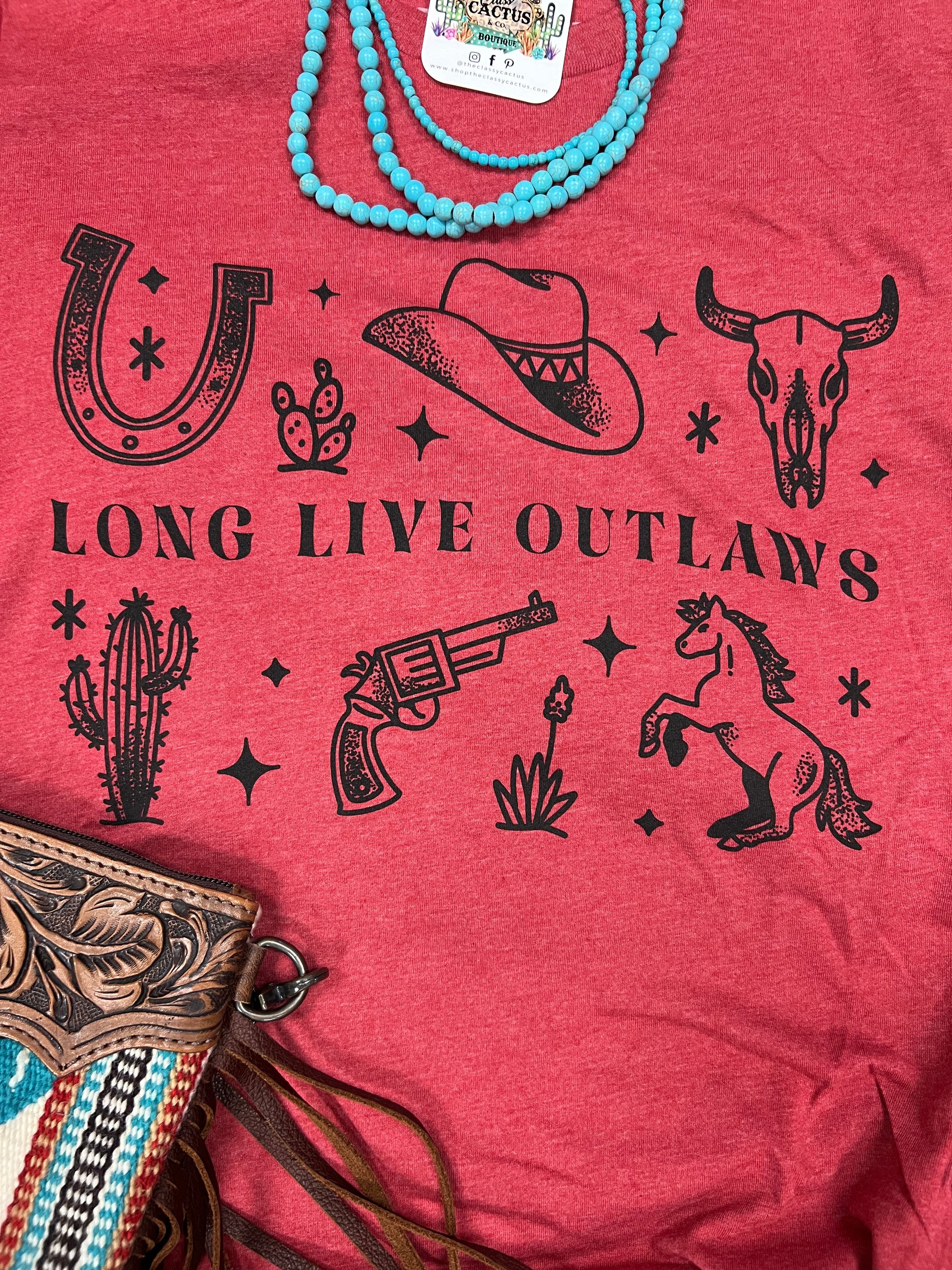 This is the perfect Tee for anyone who loves the Western lifestyle. Has a great vintage -inspired theme. This red tee features a combination of horseshoes, a cowboy hat, a skull, a cactus, and a galloping horse. Make this a statement and wear it proudly