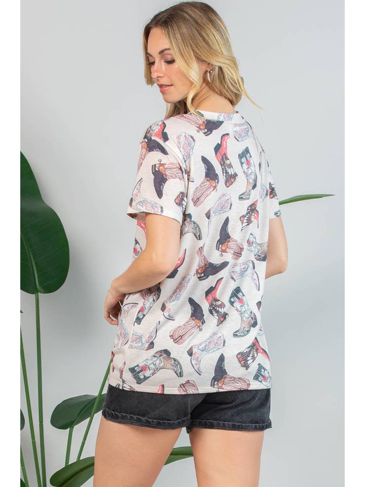 This is an adorable Scoop Neck T-Shirt with Multiple Western Boots.