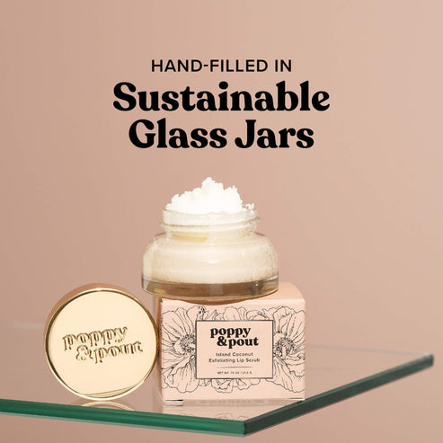 Poppy & Pout's Exfoliating Lip Scrubs are the perfect way to prep your pout for smooth, hydrated lip balm application. We use a clean combination of natural ingredients to help clean and gently exfoliate your lips. Our Island Coconut Lip Scrub smells just like those summer months spent on the beach and keeps your lips soft and kissable for hours!