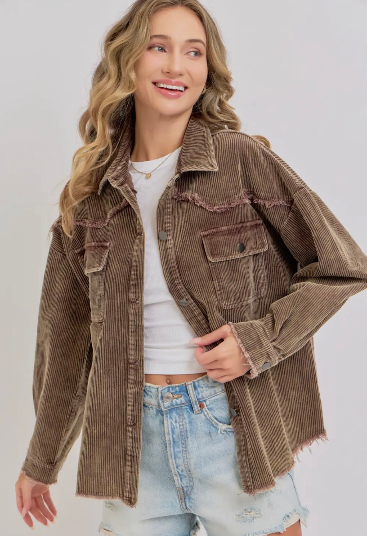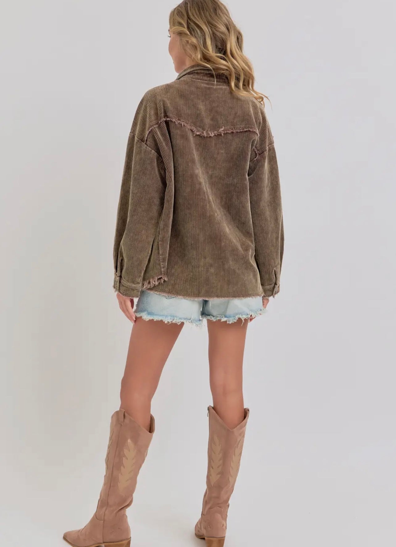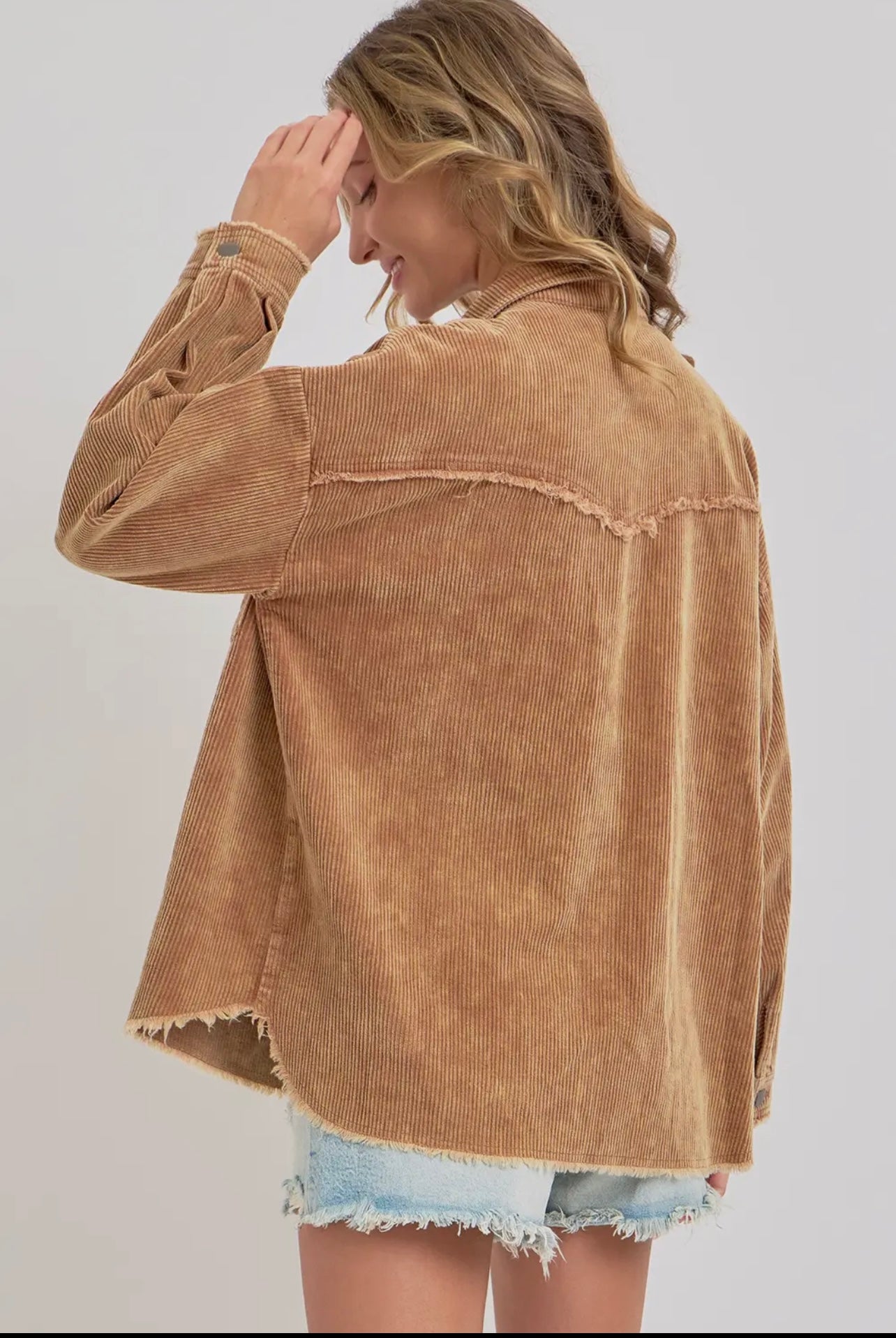 Corduroy mineral wash Shackett perfect for layering up. This Shacket is Western inspired. It’s perfect amount of chic and cowboy western combined.
