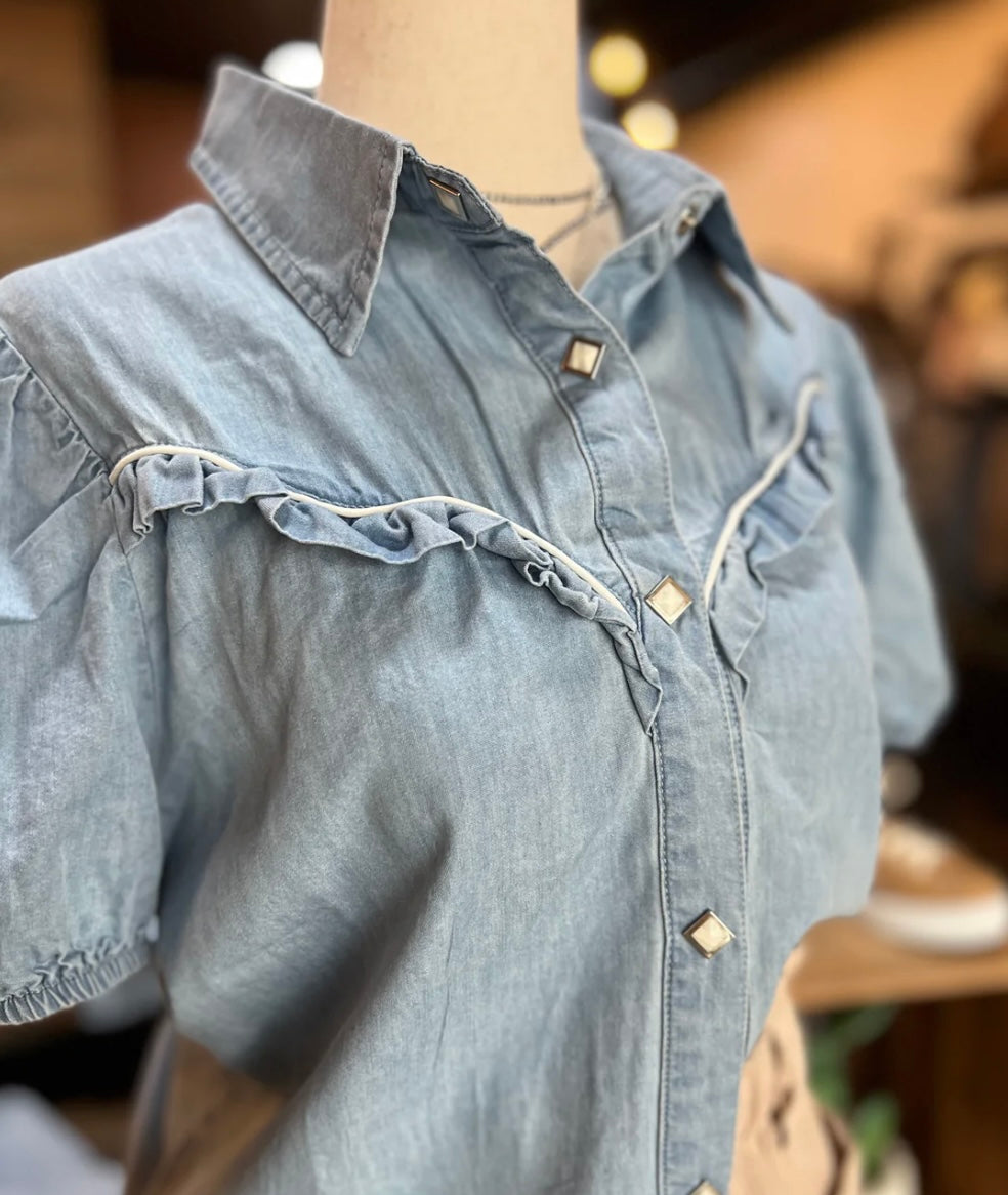 The Cream or Blue Short Sleeve Turquoise 3/4 Pearl Snap
